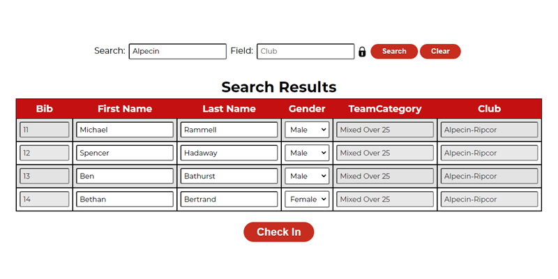 One of my first projects was a dedicated team registration tool allowing a team to be looked-up, edited and checked-in together. |